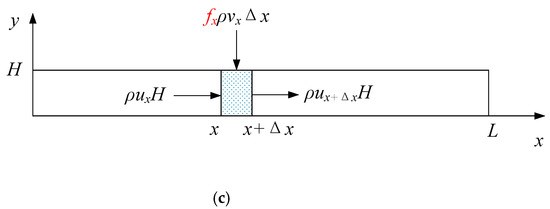 Selecting a control volume element from the channel (see Figure 2c and Figure 6), the conservation of mass could be expressed as