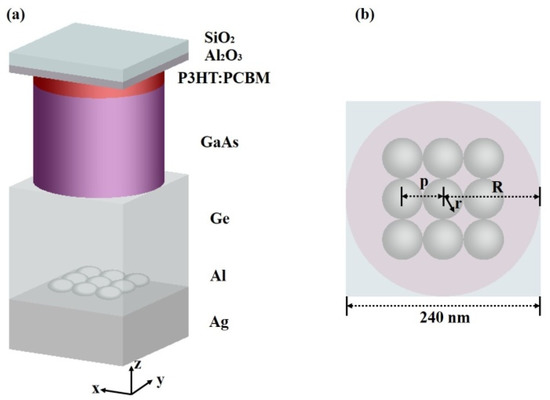 - Singh, G.; Verma, S.S. Design and analysis of thin film GaAs solar cells using silver nanoparticle plasmons. Photonics Nanostruc. Fundam. Appl. 2019, 37, 100731. [Google Scholar] [CrossRef]