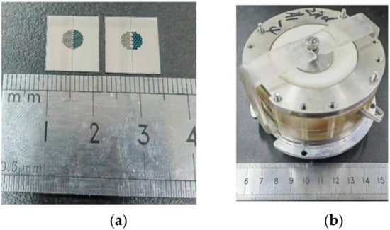 In order to completely solve the problem of manual alignments, Zheng developed an electrochemical seismic sensor, integrating two pairs of anode and cathode electrodes on a single wafer []. However, due to problems in structural design, cathode electrodes were only distributed on wafer surfaces, and the cathode in the center of the wafer was difficult to use, resulting in compromised cathode areas and low sensitivities.