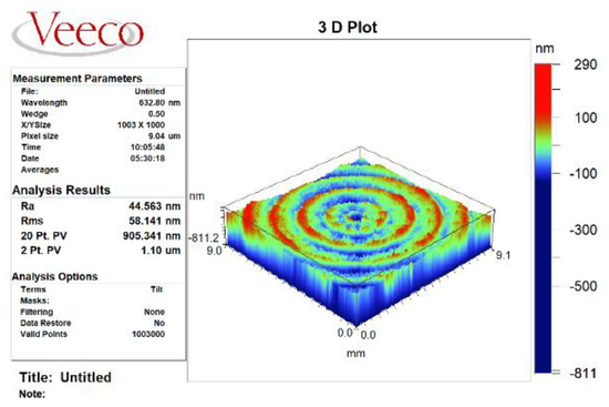 Figure 11. Combined with the test results, it can be seen that the test size is 9.1 mm × 9.1 mm, the surface roughness is