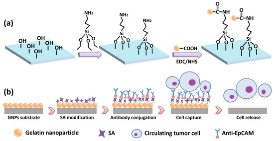 - Wei, X.; Chen, K.; Wang, Z.; Huang, B.; Wang, Y.; Yu, M.; Liu, W.; Guo, S.-S.; Zhao, X.-Z. Multifunctional Gelatin Nanoparticle Integrated Microchip for Enhanced Capture, Release, and Analysis of Circulating Tumor Cells. Part. Part. Syst. Charact. 2019, 36, 1900076. [Google Scholar] [CrossRef]