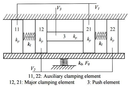 where kp is the stiffness of clamping elements, kl is the stiffness of linking springs, and k0 is the stiffness of preloaded spring. In this way, the clamping force is maintained while the motor travels along the guiders and avoids the potential decrease in performance raised by the wear of clamping elements. Additionally, in the actual design, the location of major clamping elements and auxiliary clamping elements shall be very near to each other so this motor is not sensitive to assembling errors which cause difficulty of clamping.