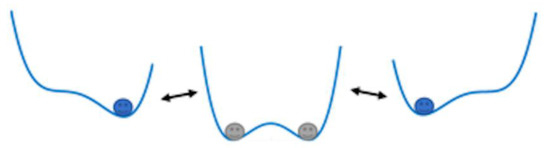 s(t) is the periodic tactile signal; Γ(t) is the input Gaussian white noise with intensity D and 0 mean value. K is the normalized transformation factor of the input mixed signal. By comparing the frequency range of the generated tactile signal and the intensity ( = 0.3 mV) of input Gaussian white noise with standard system parameters, we determine the system parameter (a = b = 16, K = 130,000). The determined bistable system is shown in Figure 4. The system will appear stochastic resonance effect under the common drive of the input weak periodic tactile signal and Gaussian white noise so that the system state jumps between the two steady states. The output is a bistable signal with characteristic information of the original signal.
