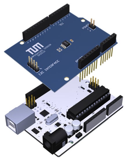 Figure 2. Illustration of the temperature sensor TUMino shield together with an Arduino UNO.