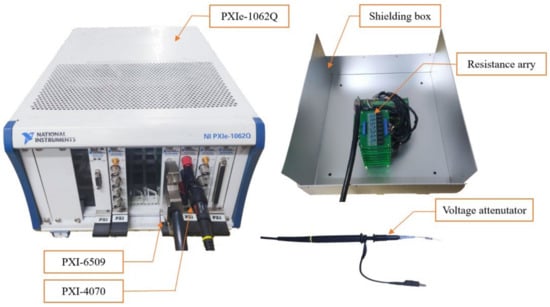The resistors are formed by modules, which are presented in Table 2. When the synthesized resistance is generated, its voltage will be scaled by the voltage attenuator. This voltage value is acquired by the PXI-4070 module and then processed by the LabVIEW software.