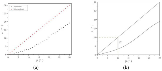 Fitting diagram of brush wire rebound: (a) Measured angle of brush wire rebound, (b) Fitted angle of rebound.