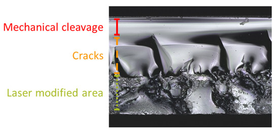 Sidewall profile showing mechanical cleavage, cracks, and laser-damaged areas (adapted from [16]).