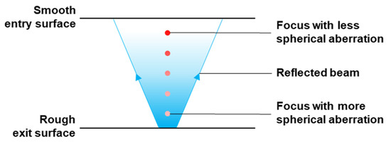 In addition, for a better understanding of the exact mechanism, a thermal camera may be employed to quantitatively evaluate the interaction of the reflected laser beam on the multi-foci of the incoming beam at the various one-third sections. A comparison between the results of single-surface and double-surface polished samples could explain the effects of beam reflection and its effectiveness in reducing the problems caused by spherical aberration.