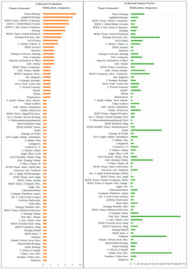 Table 3, Table 5 and Table 6 concluded that in recent years the most focused article topics by researchers are: electrochemical capacitors; mechanism, materials, systems, characterization and applications, EH sensor nodes, and conformal piezoelectric EH and electrical energy storage. Figure 6 provides clear details of highly-cited manuscripts published by numerous publishers from the Scopus database.