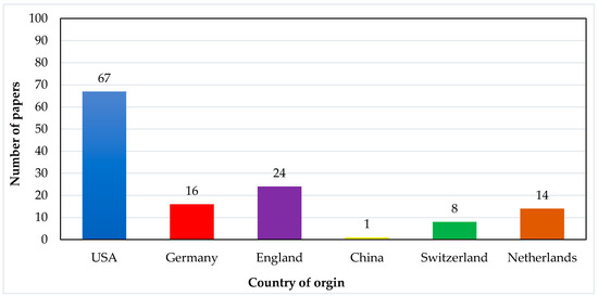 Figure 8. Graphical presentation of the number of papers vs. country of origin.