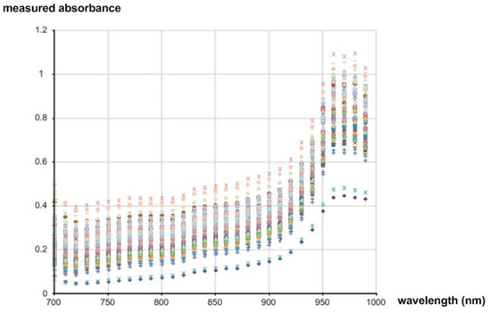Measured absorbance values over 700 nm–1000 nm wavelengths.