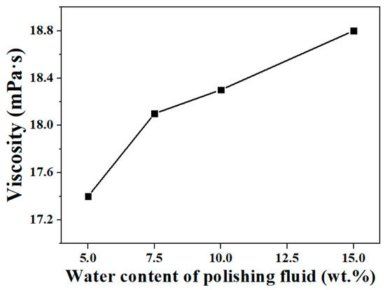 Figure 4. Variations in the viscosity of polishing fluid with water content.