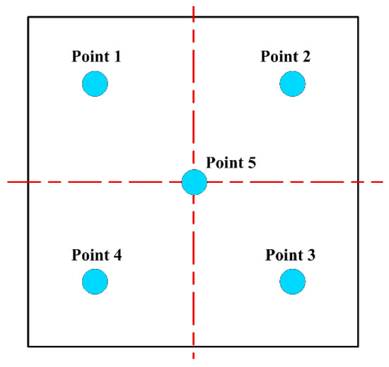 To verify the above analysis, the surface of KDP crystals polished with a polishing fluid containing 7.5 wt.% water was polished for 20 min with a polishing fluid containing 5 wt.% water. To ensure that the observations of the polished surface were representative, five points on the KDP surface were observed with an optical microscope (Olympus MX40, Tokyo, Japan), as shown in Figure 8.
