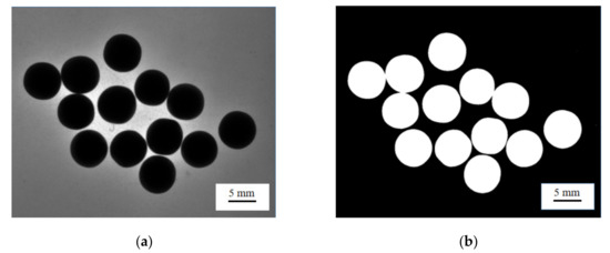 Figure 3. Pearl image preprocessing. (a) Original image of pearl; (b) pearl binary diagram.