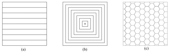 Infill pattern: (a) linear (b) concentric (c) hexagonal.