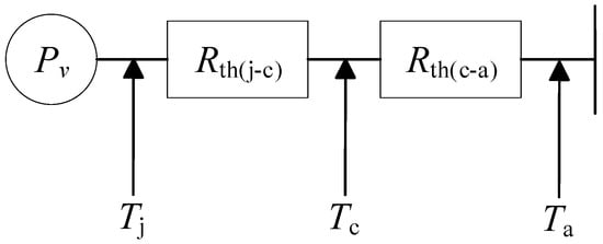 According to the heat resistance principle, the entire heat dissipation process is simplified into a thermal model network based on a physical model, as shown in Figure 4 [23,24].