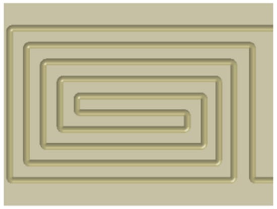 Flow field boundary conditions: Assuming that the cooling water in the heatsink is continuous incompressible water, its nature is constant; the flow velocity of the cooling water and the pipeline contact boundary is zero. The outlet boundary conditions are designated as fully developed flow, and the inlet temperature is set to 25 °C, the water flow speed is set to 16 L·min−1, and the maximum number of iteration steps is set to 300 steps.