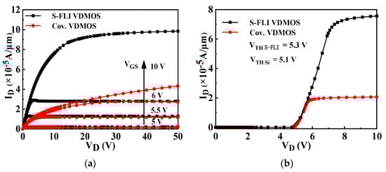 - Chen, X.; Feng, Q.; Jin, T. 600-V shielded trench split-gate VDMOS improving the figure of merit. Int. J. Electron. 2019, 107, 1083–1097. [Google Scholar] [CrossRef]
