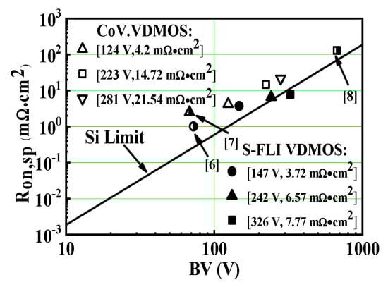 - Zhou, X.; Feng, Q.; Chen, X. The Study of P-pillar and Trench Technology in VDMOS. In Proceedings of the 2019 PhotonIcs & Electromagnetics Research Symposium-Spring (PIERS-Spring), Rome, Italy, 17–20 June 2019. [Google Scholar]