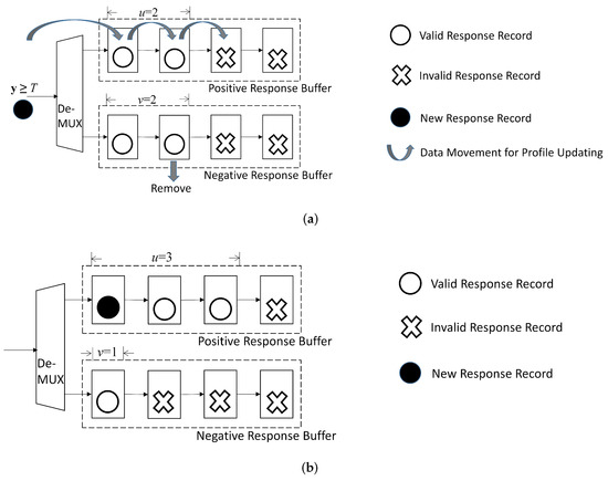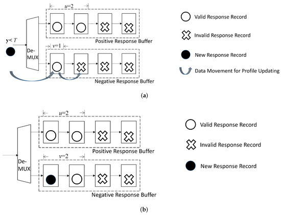 When a new positive response is received (i.e., ), it is desired that the selected old record to be replaced belongs to so that . From (28) and (29), it can then be concluded that