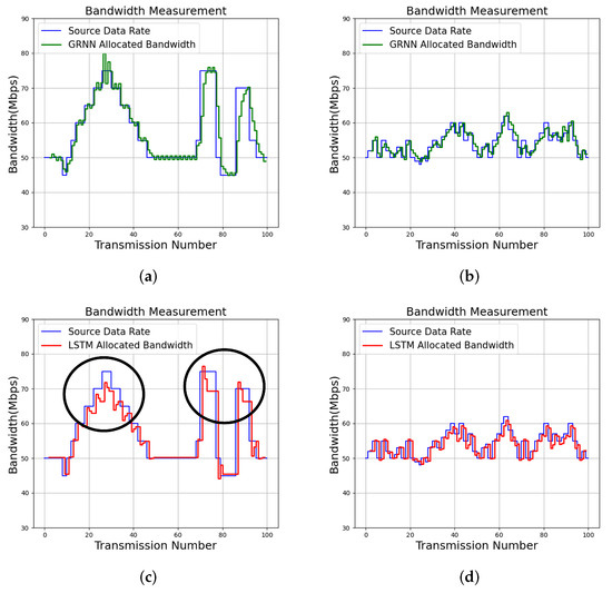 The auto-regressive integrated moving average (ARIMA) [17] and GRNN [9] can be employed for delivery quality prediction without offline training. Similar to the approaches based on MLP and RNN, the ARIMA performs the prediction based only on the past source data rates. Because the bandwidth usage of a service may not be stationary, it would be difficult to maintain high prediction accuracy in the presence of surges or plummets in the source data rate of the service. To solve the nonstationary issues, a time-varying profile is used for GRNN-based prediction [9]. In addition to bandwidth allocations, the profile also contains the corresponding service responses. Profile updating policies are proposed for accommodating new service responses, so that the algorithm can be self-adaptive to new trends for the service.