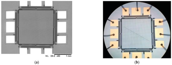 where is also a constant. It can be seen from Equation (7) that the change in the resistance value of the piezoresistive beam is proportional to the fourth power of the measured voltage. In addition, when the measured voltage is an AC voltage , Equation (7) can be written as: