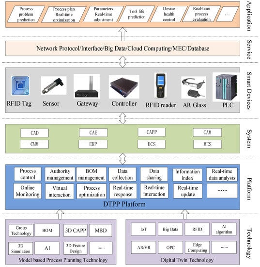 - smart deviceslayer Closed-loop control is the main feature that distinguishes the DTPP system from the traditional CAPP system. The hardware that performs information feedback mainly includes various types of sensors, RFID tags, and communication equipment. Therefore, the DTPP system is no longer a pure process design software system, but an integrated application system that combines software and hardware.