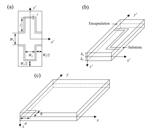 Figure 1a shows the flexible heater with periodic serpentine heat sources embedded in the orthotropic substrate and encapsulation. Due to periodicity, only a unit cell is investigated, as shown in Figure 1b.