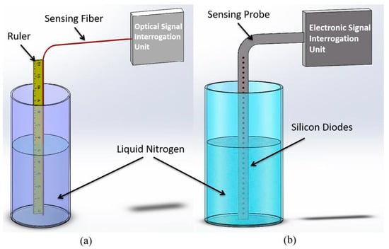 - Chen, T.; Wang, Q.; Chen, R.; Zhang, B.; Lin, Y.; Chen, K.P. Distributed liquid level sensors using self-heated optical fibers for cryogenic liquid management. Appl. Opt. 2012, 51, 6282–6289. [Google Scholar] [CrossRef] [Green Version]