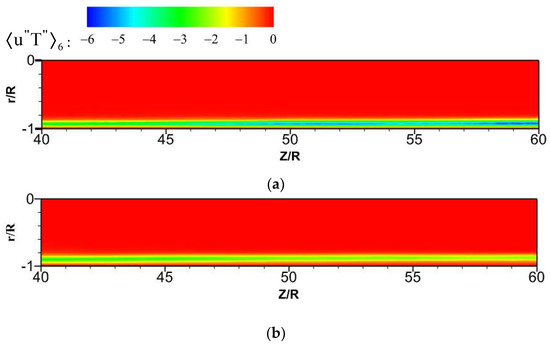 The contour of turbulent heat fluxes at the section of Z/R = 50.