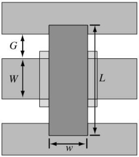 MEMS parallel switches can be integrated in coplanar waveguides (CPW) or microstrip lines. In this paper, 50 Ω CPW is used to making the circuit model analysis. CPW is generally defined by center strip width W and gap width G. The CPW transmission line has a dielectric layer of thickness td, and the dielectric constant is εr. The length of the beam is L; the width is w, and the thickness is t. A MEMS capacitive parallel switch top view is shown in Figure 1.