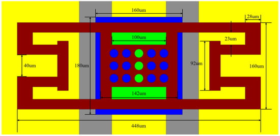 The physical dimensions of the suggested RF MEMS switch are shown in Figure 11. Four serpentine springs are coupled to the RF MEMS switch beam.