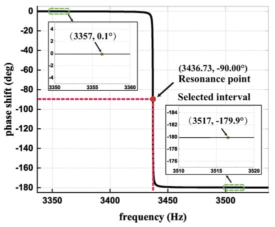 From the results in Figure 5b, we can obtain that the phase delay equals 5 . 56 ° , and the phase delay can be eliminated by adjusting the demodulation initial phase φ 0 from Equation (22). Another promising finding was that the phase shift φ x * in nonresonant status is close to 0 ° or 180 ° according to Equation (5). As a result, the phase delay can be characterized by the injected nonresonant force demodulation value. The detailed compensation scheme is demonstrated in the next section.