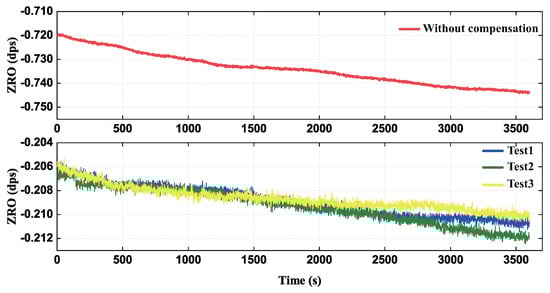 Figure 16. The ZRO of gyroscope at room temperature before and after compensation.