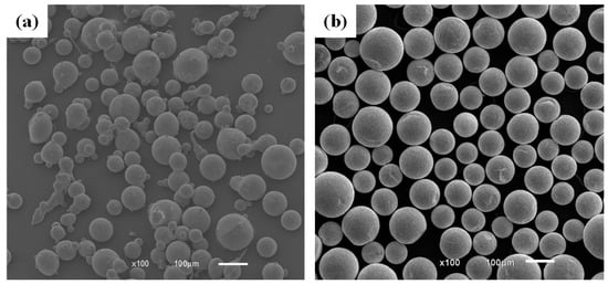 Here, 45 steel was utilized as the substrate in the experiment, and its major components are shown in Table 1. Ni60A powder, the main components of which are shown in Table 2, was mixed with spherical WC particles in a mass ratio of 4:1 and used as an experimental coating. The particle size of Ni60A powder and spherical WC particles was 100–270 mesh. The microstructure is shown in Figure 1. The laser used in the experiment was LDM3000-100. The processing parameters in the experiment were as follows: the laser power was 1400 W, the defocus was 0 mm, the scanning speed was 5 mm/s and the feeding rate was 15 g/min. As shown in Figure 2a, the magnetic field generator was composed of two Helmholtz coils in series. It could generate a vertical alternating magnetic field, in which the adjustable range of field frequency was 0–10 Hz, and that of field intensity was 0–45 mT. The parameters for the alternating magnetic field in the experiment were as follows: the frequency was 5 Hz, and the magnetic field intensities were 0 mT, 10 mT, 20 mT, 30 mT and 40 mT. Figure 2b shows the waveform of the magnetic field.