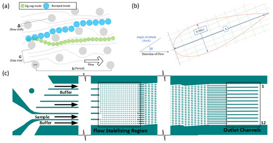 - Ahasan, K.; Landry, C.M.; Chen, X.; Kim, J.H. Effect of angle-of-attacks on deterministic lateral displacement (DLD) with symmetric airfoil pillars. Biomed. Microdevices 2020, 22, 42. [Google Scholar] [CrossRef]