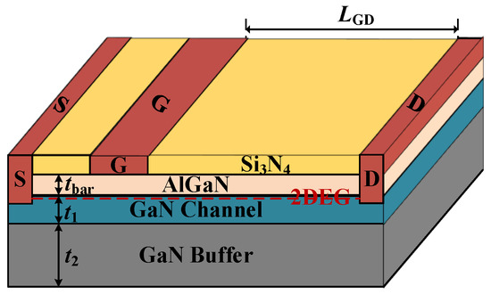 AlGaN/GaN devices have gained successful application in high-power fields due to their better than silicon performance [1,2]. One of the most essential performance parameters for a GaN-based power device is its capability to handle a high voltage in its off state [3]. The success of the designing and exploration of Si-based power devices in the past few decades has mainly relied on the mature combination of technology computer-aided design (TCAD) tools and analytical models. This combined tool is currently not that applicable in the exploration of AlGaN/GaN HEMTs, who have much more complicated device physics. The simulations using commercial TCAD tools not only require the users for their abundant experience in physics and simulations. These time difference (TD) method- or Monte Carlo (MC) method-based simulations are also time-consuming and poor in convergence. Moreover, due to the complicated coupling effects resulting from the stacked structure and 2D distribution of charges, considering the influence of background carriers, traps, and interface states in AlGaN/GaN HEMT, such a defect of the conventional TCAD method is therefore amplified [4,5]. For the same reason, the physical analytical models which are expected to be capable of effectively characterizing the correlation between structure parameters and off-state performance are yet to be presented, demonstrating the difficulty of characterizing the off-state performance.