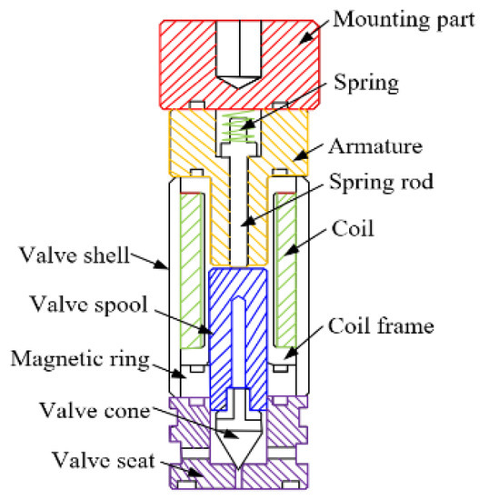 - Wang, L.; Li, G.; Xu, C. Effect of characteristic parameters on the magnetic properties of solenoid valve for high-pressure common rail diesel engine. Energy Convers. Manag. 2016, 127, 656–666. [Google Scholar] [CrossRef]