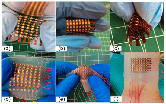 - Huang, Z.; Hao, Y.; Li, Y.; Hu, H.; Wang, C.; Nomoto, A.; Pan, T.; Gu, Y.; Chen, Y.; Zhang, T.; et al. Three-Dimensional Integrated Stretchable Electronics. Nat. Electron. 2018, 1, 473–480. [Google Scholar] [CrossRef]