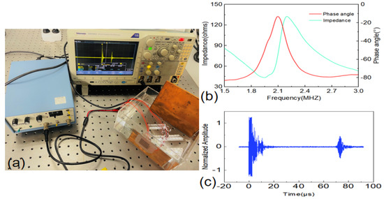 (a) Impulse echo; (b) impedance and phase angle spectra; (c) impulse echo response.
