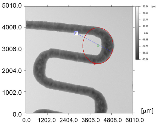 Figure 5 illustrates how the curvature radii of the rectangular microchannels were measured and in