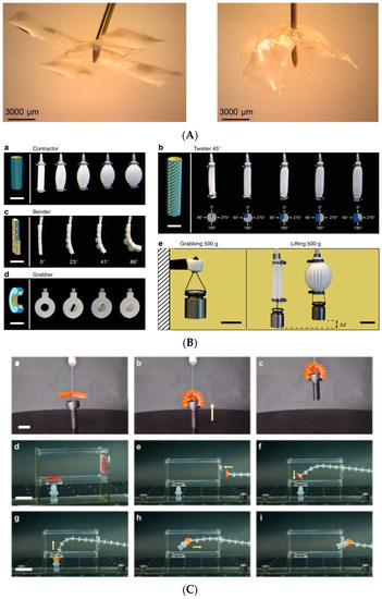 - Won, P.; Ko, S.H.; Majidi, C.; Feinberg, A.W.; Webster-Wood, V.A. Biohybrid Actuators for Soft Robotics: Challenges in Scaling Up. Actuators 2020, 9, 96. [Google Scholar] [CrossRef]