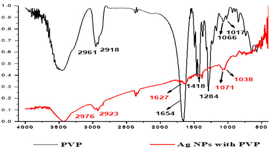FTIR spectra of pure PVP and PVP-AgNPs.