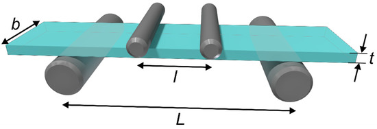 where F is the load at glass sample failure, b is the width, t is the thickness of the sample, and l, L are the distance between the loading and supporting rollers, respectively.