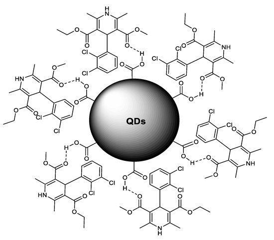 Fluorescence quenching occurred when the fluorescence intensity was reduced by physical and chemical interactions between fluorescent substances and quenching agents. At the binding site, hydrogen bonding, electrostatic forces and van der Waals forces impacted the fluorescence properties of QDs.
