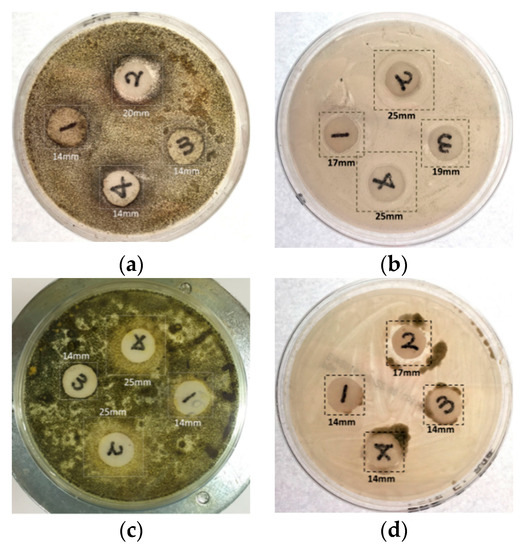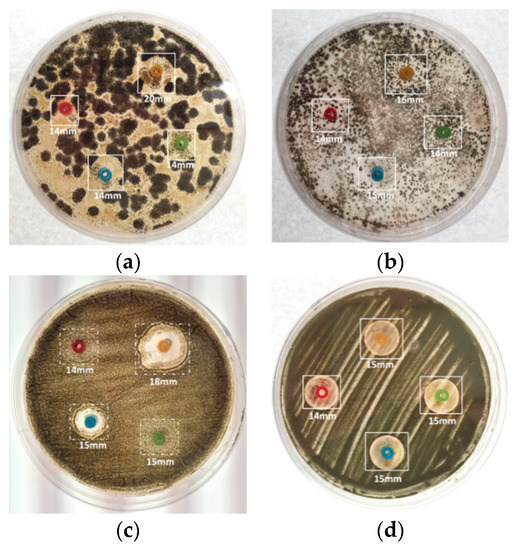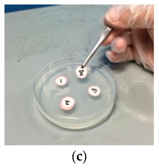 - The microbial control cotton pad test was an improvement proposed for inhibition zone testing [49,50]. Compared to the experiment with the metal ring, in which the test solution needs to be injected in the middle of the ring, the cotton pad holds water, so the test solution will not flow on the culture medium, and the waiting time for drying during the experiment can be shortened.