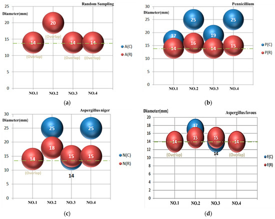- In the NO.1 liquid, the effects were inhibited at 14 mm in all four samples in the metal ring experiment and at 17 mm in Penicillium in the cotton pad experiment. In the metal ring experiment, the NO.2 liquid had an effect at 20 mm in the bathroom samples and a 15 mm inhibited effect on flavus. In the cotton pad experiment, the inhibited effect was more effective in Penicillium and Aspergillus Niger, both with an inhibited effect at 25 mm. The NO.3 and NO.4 liquids had a14–15 mm effect on all samples in the metal ring experiment. In the cotton pad experiment, NO.3 had an effect on Penicillium at 19 mm, while its effect on the others was only 14 mm. NO.4 had an effect of 25 mm on Penicillium and Aspergillus Niger and only 14mm on the bathroom and Aspergillus flavus samples.