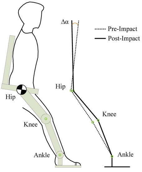 For the second strategy, Zelik et al. proposed to reduce the PGRF by trailing ankle push-off just before a contralateral foot strike [12,13], which can reduce the vertical velocity of CoM to reduce potential PGRF. However, the ankle should be powered to provide net-positive work for a preemptive ankle push-off [14], which can not be used for most exoskeletons with passive ankle joints. Moreover, humans can effectively reduce walking impact by knee flexion after strikes [15,16,17]. Further, the stiffness and the damping of human legs are crucial for reducing joint and limb damage on impact [18,19].