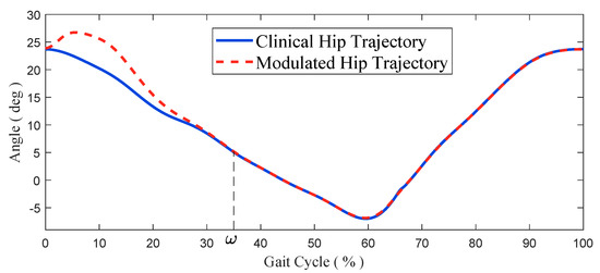finally, Equation (7), (11), and (12) can be used to calculate the modulated knee trajectory: