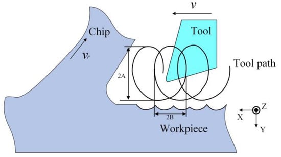 where A and B are the amplitudes in X and Y directions, respectively. f is the ultrasonic vibration frequency, which is 20 kHz in this paper. φ is the phase difference of two-way sinusoidal excitation. v is the cutting speed.